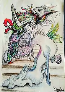 - Jorge Luis Borges et M. Guerrero, Le Livre des êtres imaginaires [détail des éditions] p. 13-14