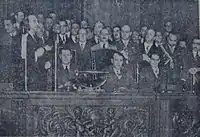 - Dans une allocution devant une assemblée de travailleurs en avril 1945, Ángel Borlenghi déclara en effet : « […] lorsqu’en 1930 fut établi un gouvernement de facto qui était l’allié de l’oligarchie, les constitutionnalistes dirent-ils alors que ce gouvernement n’avait pas de compétences législatives ? C’était pourtant là une dictature sanguinaire qui incarcérait des travailleurs, des étudiants et des opposants politiques, torturait les gens dans les prisons et tuait sans qu’il y eût l’état de guerre […] Aucun des constitutionnalistes d’alors ne défendit les intérêts nationaux. […] La révolution du , malgré toutes ses erreurs, peut faire état de l’héritage d’une œuvre de justice sociale. En cette matière, les classes laborieuses affirment qu’elles n’ont aucun scrupule vis-à-vis de la Constitution. Cela prendra place dans l’histoire du pays si les actions de Perón purgent le pays de la fraude, des pots-de-vin et des arrangements spéciaux, et s’il se met à l’écoute des gens des différents secteurs, en particulier des syndicats, qui sont les seules associations n’ayant pas de liens avec l’oligarchie » (publié dans La Nación, édition du . Reproduit dans Electoral Fraud, the Rise of Peron and Demise of Checks et Balances in Argentina, Lee Alston & Andrés A. Gallo, Working paper PEC2009-0001, Iinstitute of Behavorial Science, Université du Colorado à Boulder, juillet 2009).