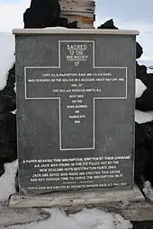 Ce groupe, composé de Mackintosh et de trois marins, quitte le navire dans la matinée du 3 janvier avec un traîneau contenant des fournitures et un sac de courrier. Deux marins regagnent rapidement le navire, tandis que Mackintosh et le dernier marin vont de l'avant. Ils campent sur la glace ce soir-là, mais le lendemain, toute la zone de banquise autour d'eux s'est disloquée[16]. Après une course désespérée sur les morceaux de glaces en mouvement, ils réussissent à atteindre une petite langue de glacier, où ils campent et patientent plusieurs jours que leur photokératite s'estompe. Lorsque leur vue revient, ils constatent que le cap Royds est visible, mais que le « passage » de glace y conduisant n'est plus là. Après une nouvelle attente, ils décident d'aller à l'abri par la terre ferme, une entreprise dangereuse en raison de leur manque d'expérience et d'équipement[16].