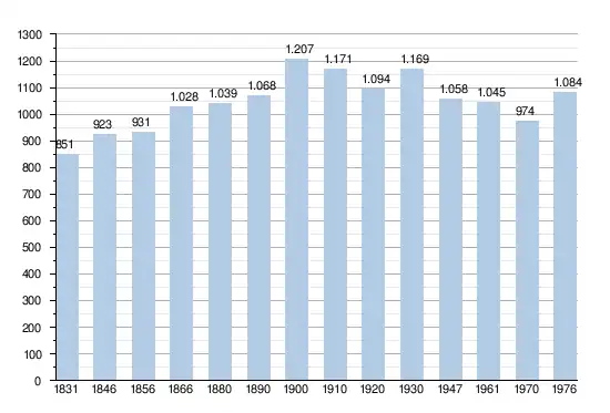 - Sources : INS, Rem. : 1831 jusqu'en 1970 = recensements, 1976 = nombre d'habitants au 31 décembre.