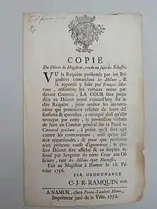 - Gaillot, Histoire générale, ecclésiastique et civile de la Ville de Namur, 1790