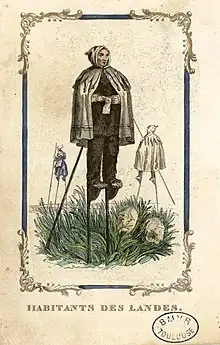 Les témoignages les plus anciens de l’usage des échasses dans les Landes de Gascogne datent du début du XVIIe siècle[2]. Le manque de documents historiques fiables ne permet pas de déterminer avec exactitude leur origine : elles proviennent ainsi soit d’Europe du Nord (Namur organise en particulier des combats d’échasses depuis 1411), soit elles sont en usage dans la région depuis une époque antérieure.