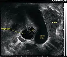 - EUS par mini-sonde (sonde mince d’ultrasons pour les détails fins de la paroi de l’intestin)[1]