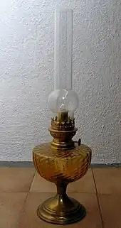 - La graisse puis l'huile : très tôt après la découverte du feu, on trouve la trace du plus vieux système d'éclairage : la lampe à huile. Les plus anciennes lampes à huile étaient constituées d'une simple pierre évidée dans laquelle une mèche trempait. On estime à 20000 av. J.-C. la datation de ces lampes, il est alors probable qu'elles furent utilisées par les femmes et les hommes préhistoriques. La lampe à huile se complexifia jusqu'au XVIIIe siècle en se rapprochant de la lampe à pétrole qui sera utilisée au XIXe siècle, lorsqu’apparut l'huile de paraffine, tirée de la houille et, plus tard, du pétrole. Le perfectionnement des lampes à huile vise à obtenir un plus grand pouvoir éclairant et aussi à améliorer la stabilité de la flamme. Afin d'éviter les battements, on réalise un écoulement constant, suivant le principe des vases communicants en plaçant le réservoir à la hauteur de la flamme - et non plus en dessous - : c'est le vase de Mariotte. On employait surtout des huiles de plantes très cultivées comme le colza, le navet ou l'œillet. G. Carcel invente un système d'horlogerie qui actionne une pompe horizontale assurant une bonne stabilité de la flamme. En 1784, la lampe d'Argand possède sa forme définitive pour l'éclairage domestique. Ce sont Argand et le pharmacien Quinquet qui assurent la commercialisation de leurs lampes.