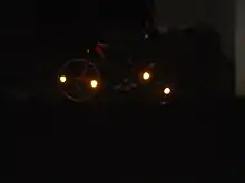 Un vélo circulant de nuit ou par visibilité insuffisante (brouillard, orage ou temps très nuageux, passage dans un tunnel...) doit avoir allumé un phare émettant une lumière blanche ou jaune vers l'avant ainsi qu'une lampe émettant une lumière rouge vers l'arrière. Le feu de position avant blanc ou jaune doit émettre une lumière fixe, c'est-à-dire non clignotante[6], le feu de position arrière peut être fixe ou à intensité variable (clignotant)[7], en France, selon le code de la route.