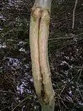 L'éclatement de l'écorce, une sorte de gélivure[1] (en anglais Frost crack or Southwest canker[2]) est une forme de dommage à l'écorce des arbres que l’on trouve parfois sur des arbres à écorce mince, visible sous forme de fractures verticales sur les surfaces orientées vers le sud des troncs.