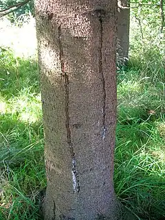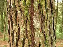L'écorce sillonnée normale a une couche d'écorce sur le bois en dessous. Toutefois, l'écorce peut peler ou tomber de l'arbre en feuilles (bouleau), en plaques (sycomore et pin), en lanières (cèdre) ou en blocs (cornouiller)[3].