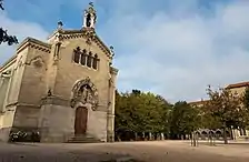 Le tympan de la chapelle représente Jésus-Christ prédicateur, avec Thomas d'Aquin à gauche et Jean l'évangéliste à droite.