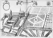 Planche gravée du XVIIe siècle représentant l'abbaye Saint-Martin de Pontoise, dans le livre Monasticon Gallicanum, Bibliothèque nationale de France.