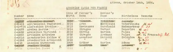 En 1926, l'école accueille dans son établissement de Marseille 177 orphelines qui se trouvaient auparavant dans des orphelinats de Grèce de la Near East Foundation, alors connue sous le nom de Near East Relief (N.E.R.)[11]. Ce transfert fut le fruit d'une demande de l'A.D.A.A.E.T. et un contrat définitif est signé entre l'association et la N.E.R., contrat qui permet à l'école Tebrotzassère de recevoir des subventions de la N.E.R. « pendant une année à raison du même montant par enfant que nous dépenserions si les jeunes filles en question étaient restées dans nos orphelinats d'Athènes, Syra et Corinthe », écrit Gordon L. Berry (représentant en Europe du N.E.R.)[11]. Du 21 octobre 1924 au mois de mai 1928, à Marseille, le nombre des internes atteint 300 élèves et 65 externes[8]. Les élèves, en plus de l'enseignement général, sont tenues de suivre des cours de couture et de tapisserie afin d'acquérir un métier[8].