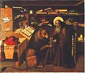 Au début du XVe siècle, sous le règne de René d'Anjou, Naples est le principal centre de la peinture flamande en Italie et en Europe du Sud avec des artistes majeurs qui introduisent de nouvelles techniques dans la peinture dans toute l'Italie ; le plus important est Colantonio, élève de Barthélemy d'Eyck et professeur d'Antonello de Messine, qui exécute plusieurs ouvrages à Naples dont Saint François donnant la règle de l'ordre et Saint Jérôme dans son cabinet.