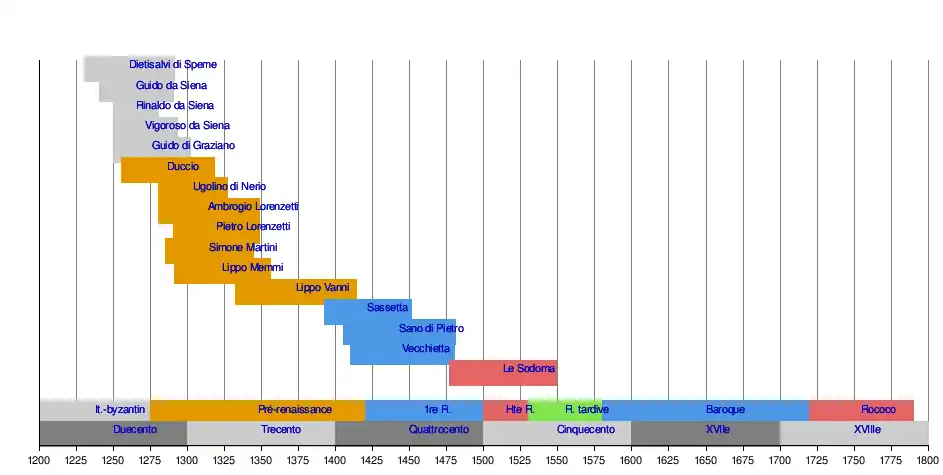 Frise chronologique de quelques peintres majeurs de l'école siennoise