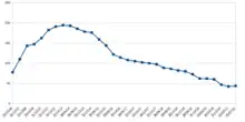 Selon l'Office national des statistiques (ONS), le taux de chômage en Algérie a atteint 12,3 % en avril 2017 contre 10,5 % en septembre 2016[52]. En mai 2019, le taux de chômage baisse de 0,3 point par rapport à septembre 2018 pour atteindre 11,4 %[53]