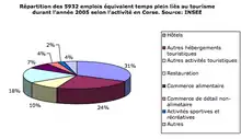 Le tourisme employait en 2005, 14 700 travailleurs en Corse (18 % des postes salariés du secteur privé). La restauration est le second employeur lié au tourisme après l'hôtellerie et plus de la moitié (58 %) des emplois du secteur sont générés par l'afflux de vacanciers.