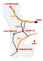 Depuis plusieurs années, les plans de désenclavement sont mis en place. La mise aux normes autoroutières de la 2x2 voies RN 13 (future A13) est en cours et la 2x2 voies (RN 174) qui relie la RN 13 à l'A 84 (l'autoroute des Estuaires (A84) de Caen à Rennes par le Sud-Manche) devait être terminée en 2010.