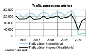 - Air Calédonie (Aircal), est la principale compagnie aérienne qui assure un service régulier sur l'ensemble du réseau domestique de la Nouvelle-Calédonie.