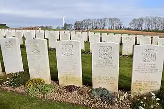 Le cimetière britannique est commencé en pour inhumer les soldats victimes des combats. Il contient 151 sépultures de la Première Guerre mondiale, dont huit non identifiées[1].