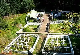 En raison du nombre de visiteurs grandissant, accroissement probablement dû à son intégration dans le réseau de sentiers de randonnée locale, il a été décidé de réaménager le site en 2000. De nombreuses plaques commémoratives, un mat à drapeau, et des escaliers ont été installés. De plus, 24 croix indiquant le nom des victimes ont été installées et un cénotaphe a été érigé[18]. En plus du nom des victimes, le cénotaphe présente un texte commémoratif (voir photo)[19].