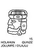 Les 19 mois du haab, le deuxième calendrier (solaire de 365 jours). Ce calendrier se compose de 18 mois de 20 jours + uayeb de 5 jours[24]. En bas à droite de chaque glyphe le nom yucatèque puis le nom probable en ch'ol classique.