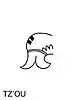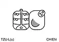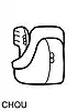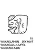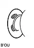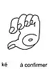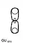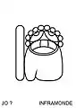 En dessous de chaque glyphe à gauche, sa prononciation (PFX=préfixe, SFX=suffixe)[23]