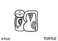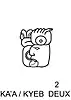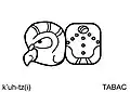 - les phonogrammes syllabiques. Youri Knorozov a exposé les règles qui président à leur emploi: les mots ou morphèmes mayas sont généralement du type consonne-voyelle-consonne (CVC). Les syllabogrammes sont des signes de type CV. Pour écrire un mot, le scribe employait donc deux syllabogrammes, la voyelle du deuxième n'étant pas prononcée[20]. Il existe au moins 124 caractères identifiés de ce type.