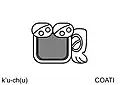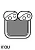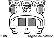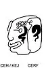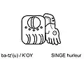 - Les glyphes sont transcrits en caractères gras, chaque glyphe étant séparé de ses voisins par un trait d'union.