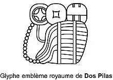 Les cités mayas précolombiennes : la plupart portaient un nom différent de celui qu'on leur connaît aujourd'hui. En bas à gauche de chaque glyphe ci-dessous figure le nom maya ancien et à droite, le nom d'appellation contemporaine. Les deux premiers glyphes sont de XUKPI=Copán (Honduras, le troisième YAXMUTAL (« le vrai pays des faisans ») est le nom de Tikal (Guatemala), le quatrième YOCIB=Piedras Negras (Guatemala), le cinquième SAAL=Naranjo (Guatemala), le huitième LAKAM HA (« les grandes eaux » est le vrai nom de Palenque, au Mexique), le onzième UXWITZA (« les trois collines » est le vrai nom de Caracol, au Belize). On remarquera aussi que certains d'entre eux sont en fait des syllabogrammes. Piedras Negras en partie basse se lit : yo-chi-b(i), soit tout simplement son nom maya ancien.