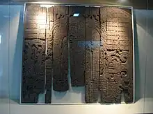 - bois : ce matériau étant extrêmement périssable, il n'en reste que de rarissimes exemplaires, en bois de sapotillier, dont les plus connus sont des linteaux provenant de Tikal.