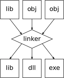 L’édition des liens est aussi capable de créer les références appropriées vers les fonctions contenues dans les « bibliothèques dynamiques partagées », dont le chargement (assuré par le système d'exploitation) est retardé jusqu’au moment de l’exécution du code objet. De telles bibliothèques partagées permettent de réduire la taille des fichiers exécutables produits par la compilation et l’édition de liens (lorsque le code de la bibliothèque est commun à plusieurs programmes). Elles sont populaires sous le nom de dynamically linked library (DLL, sous Windows) ou shared object (SO) ou dynamic library (DYLIB, sous Mac).