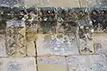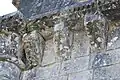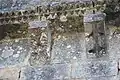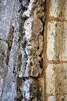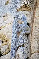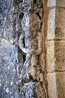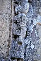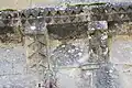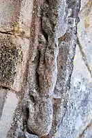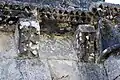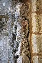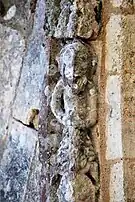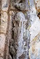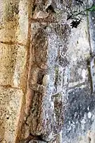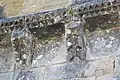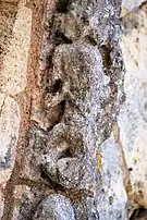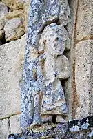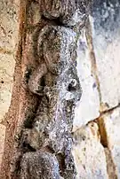 Le programme figuré secondaire, très abimé, se résume à deux colonnes encadrant la façade, surmontées de grandes corbeilles non décorées sous la corniche, ornée de dents de loup et supportée par treize modillons à motifs géométriques et un modillon à tête humaine.