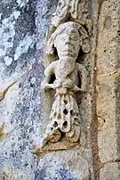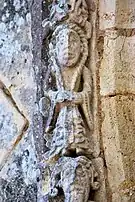 Les voussures à ressauts sont décorées de bâtons brisés, de fleurs à quatre pétales, de dents de loup, d'entrelacs. L'archivolte est illustrée de vingt personnages et animaux.