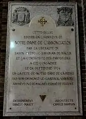 L’église Notre-Dame de l’Annonciation est consacrée le 24 septembre 1934 par l’archevêque de Malines, le cardinal Joseph-Ernest Van Roey.