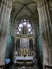 - Le maître-autel à retable monumental du XVIIe siècle[17].