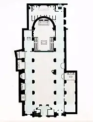 Monastère des Blancs-Manteaux à la fin du XVIIe siècle vu depuis la rue des Blancs-Manteaux ; l'église est le bâtiment situé à l'extrême gauche de l'image.