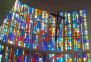 L’homme qui, avec l’abbé Marquaux, reste le plus lié à l’histoire de Notre-Dame-des-Flots, est l’architecte Raymond Morin. Non parce qu’il fait don de ses honoraires, mais surtout parce qu’il incarne le modernisme des années 1950, dont ses maisons « piano » témoignent encore sur la presqu’île. L'architecture de conception ultramoderne de l’ensemble de la nouvelle église[3], à la forme de nef de bateau renversée, demande beaucoup d’astuce et d’audace. En effet, la construction est réalisée au-dessus et autour de la chapelle précédente, qui n'est démolie qu’en 1963. Elle laisse en héritage quelques œuvres d’art sacré et symboles de la dévotion des marins à Notre-Dame-des-Flots, parmi lesquels un grand voilier et la « pinassote » dite de l’abbé Marquaux. L’autre innovation concerne les vitraux du fond, œuvre de M. Lafond et Hugues Maurin, qui donnent à l’église beaucoup de lumière et d’originalité. Ils répondent à l’époque au dernier cri de l’industrie verrière, permettant d’intégrer la création artistique à la solidité de construction, pour réaliser de véritables « murs de lumière ». La nef, quant à elle, est dotée d’un balcon accessible par un petit escalier derrière un portillon. Hugues Maurin, professeur aux Beaux-Arts, sculpte le Christ sur la croix dans un bois flotté. Il dessine également la sculpture de la Vierge en cuivre repoussé qui orne la façade[4] et forgée par Alphonse Sauvage, artisan au Cap Ferret.