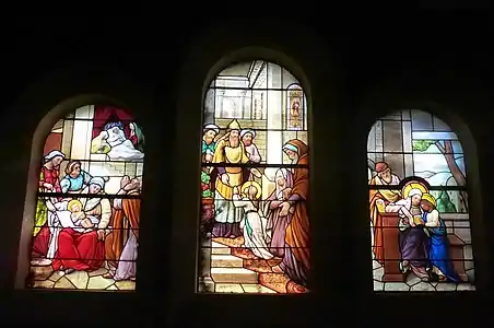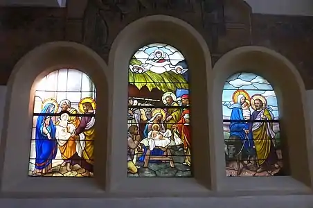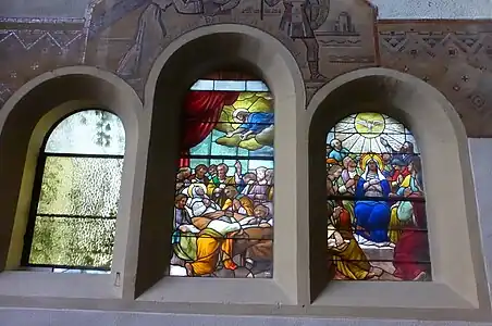 Les vitraux sont l'œuvre du maître verrier Charles Borie.