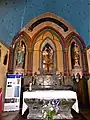 - Le chœur est orné d'un retable baroque à colonnes torses ponctué de coquilles et feuilles d'acanthe.