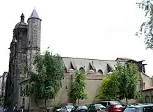 Église Notre-Dame-du-Marthuret ; vue depuis le carrefour des rues de la Harpe et du Commerce. | ||||