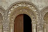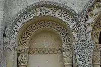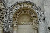 Le rouleau intérieur et ceux des arcs aveugles sont décorés de sujets humains, animaliers et végétaux entremêlés. L'ensemble de ces sculptures est daté de la période qui s'étend de 1130 à 1140.