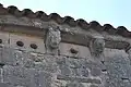 À l'extérieur de l'abside, entre les modillons, sculptés avec des gueules d'animaux et têtes d'hommes, qui portent la corniche, des trous ronds sont forés, comme dans le clocher de l'église Saint-Georges de Montagne et dans la corniche de Saint-Front de Périgueux.