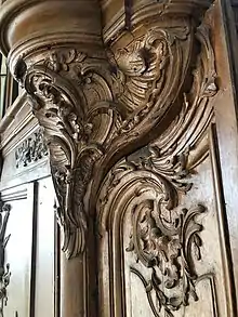 - L'impressionnant confessionnal néo-gothique provient de l'ancienne chartreuse de Bourgfontaine. Il intègre l'église lorsque le mobilier se trouve saisi à la chartreuse, lors de la Révolution française.