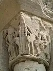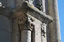 Les colonnes du portail sont ornées de chapiteaux historiés. Ils sont de petite dimension et malheureusement en assez mauvais état. L'érosion est trop importante pour tenter d'analyser les scènes en détail.