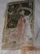 - dans le collatéral nord, des fresques du XVe siècle représentant l'Annonciation et la résurrection de Lazare[9] ;