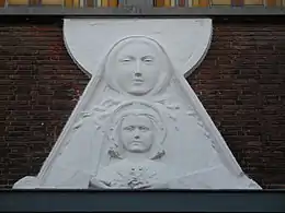 Construite sans clocher en 1935 et de dimension modeste, l’église est de style Art déco. Au dessus de la porte d’entrée un relief stylisé illustre la Vierge-Marie présentant l’Enfant-Jésus – tous deux de face – déjà marqué du cœur souffrant pour le monde (Sacré-Cœur). L’intérieur de l’église est sobre. L’ensemble architectural est dominé par la voûte parabolique au-dessus du sanctuaire. Une monumentale horloge de clocher y a trouvé sa place.