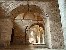 - Portique interne ménagé à l'entrée de certaines églises paléochrétiennes ou médiévales qui fait transition entre l'extérieur et l'intérieur, le profane et le sacré, avant d'accéder à la nef proprement dite.