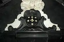 ![]() Le blason flanqué d'un griffon et d'un lion. |