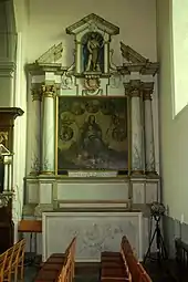 - Autel de gauche daté de 1664 et pas de 1661 comme le mentionne le Patrimoine monumental de la Belgique.