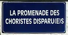Après avoir monté une rampe en pente portant le nom poétique de « Promenade des Choristes Disparu(e)s », on accède à l'édifice par la porte de style classique, précédée d'une large dalle de pierre bleue.