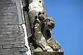 - Un blason écartelé au 1 et 4 à une croix alésée et; au 2 et 3 à l'aigle bicéphale. Ce blason est ovale. Il est possible que ce blason appartienne à la famille de la Béraudière[3]. Pour la représentation monochrome des armoiries (gravures, sculptures, etc) les couleurs sont représentées par des hachures de formes précises et conventionnelles selon la teinte. Les traits horizontaux sous les croix alésées sont la représentation de l'émail azur.
