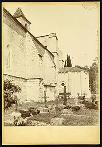 L'abside est voûtée en cul-de-four. Des contreforts plats, également romans, montent jusqu'à la corniche de l'abside.